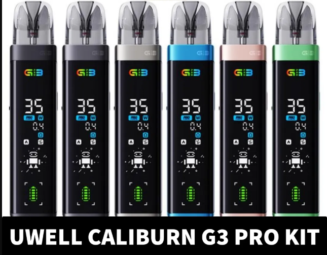 Experience the perfect blend of precision, performance, and style with the Uwell Caliburn G3 Pro 35W Pod System, featuring a full-screen display with dynamic UI, a first for the Caliburn product line. Crafted from durable zinc alloy, this sleek device offers a max wattage of 35W and supports a resistance range of 0.4-0.9ohm. Its integrated rechargeable battery and USB Type-C charging ensure reliable power, while the 3mL magnetic pods with a side-fill system and adjustable airflow switch provide convenience and customization. Featuring Pro-FOCS Flavor Tech for exceptional flavor and a clear view juice window for easy e-liquid monitoring, the kit includes two Caliburn G3 pods (0.4ohm and 0.9ohm) for versatile vaping. Available in stylish colors like Emerald Green, Midnight Black, Pacific Blue, Rose Gold, Space Gray, and Stone Gray, the Uwell Caliburn G3 Pro is the ultimate pod system for vapers seeking both functionality and aesthetics.